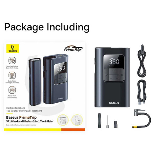 پمپ باد شارژی چراغ قوه و پاوربانک باسئوس مدلBaseus Car Tire Inflator Pumper VA1 BSCG034