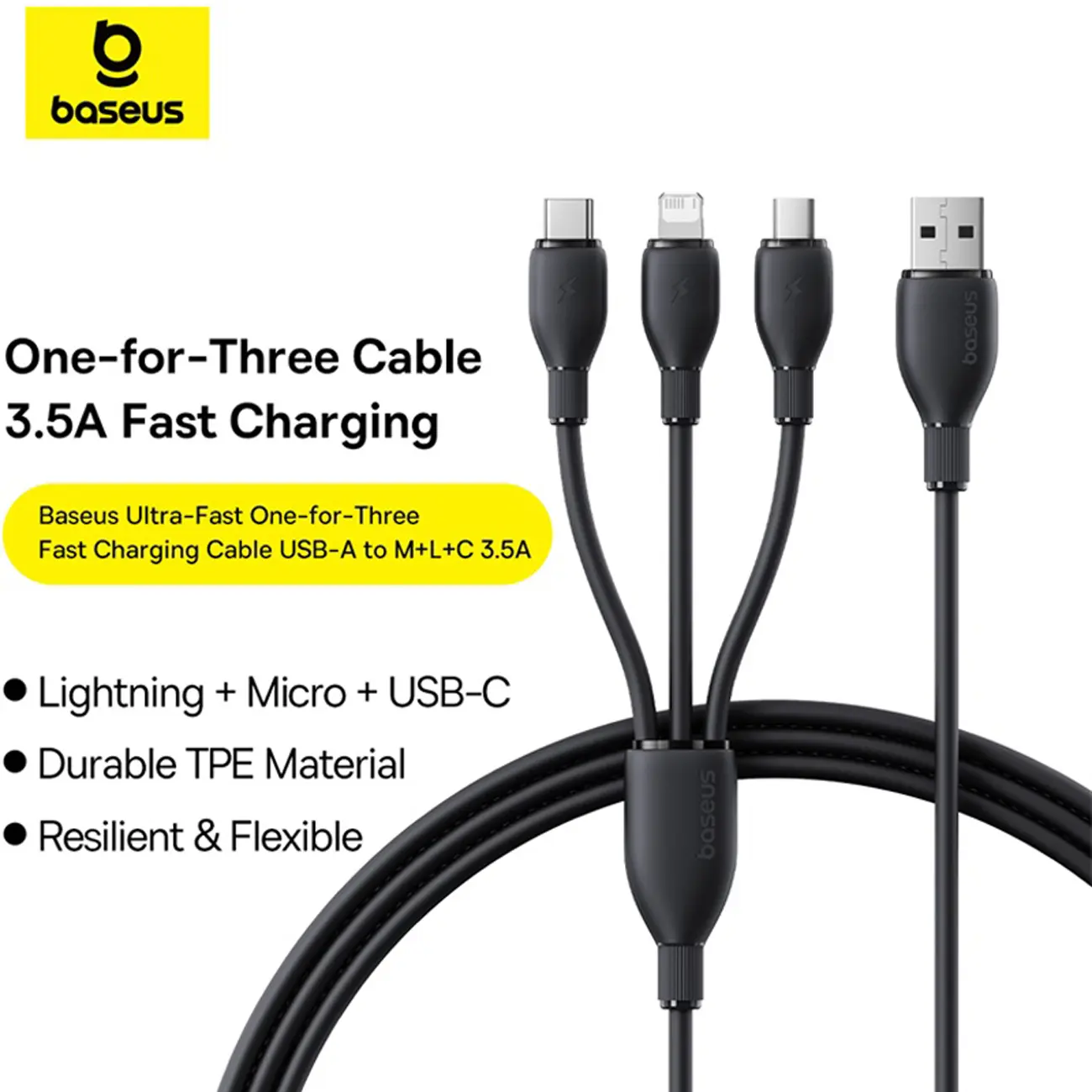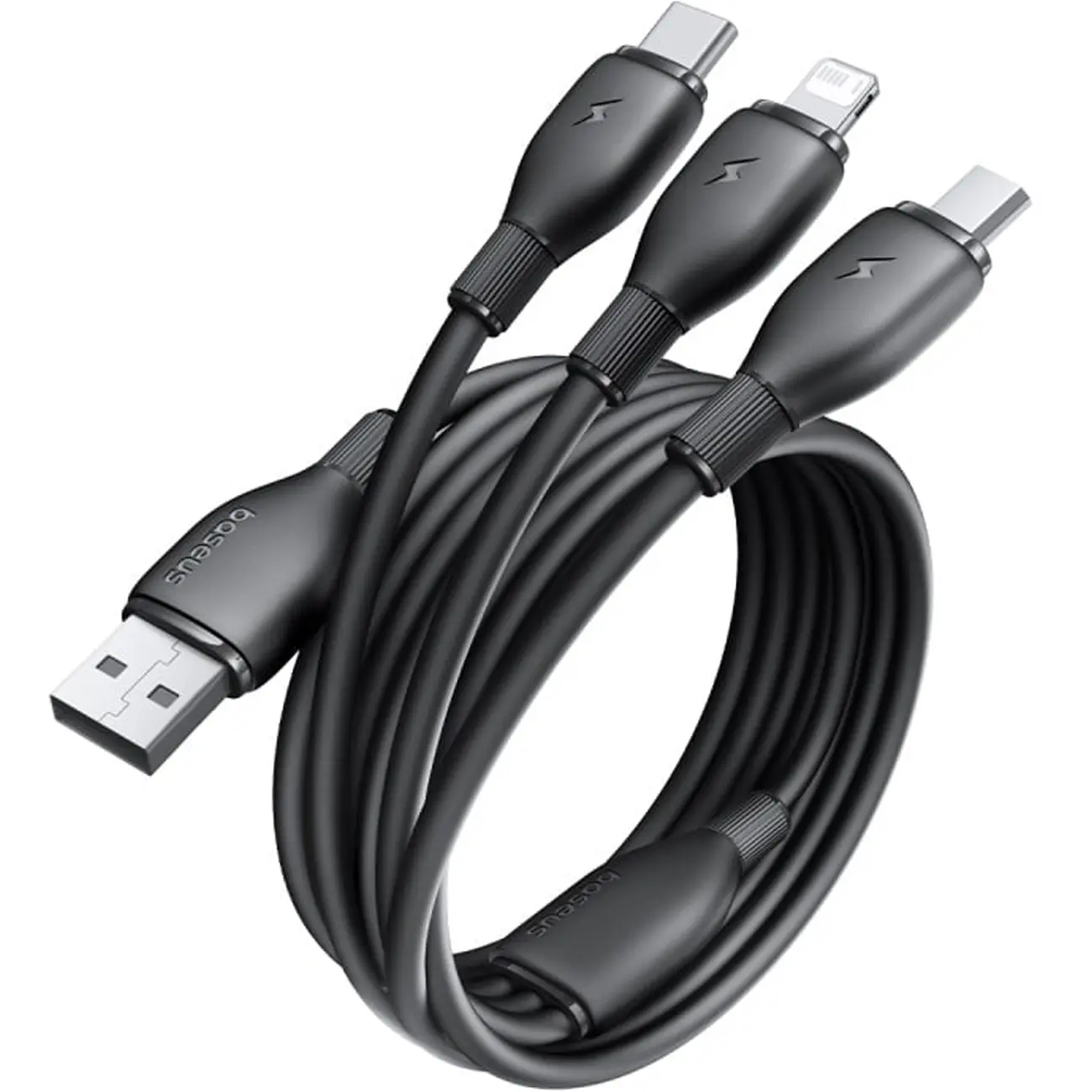 BASEUS Ultra-Fast 3 in 1 Fast Charging Cable USB to Micro USB Lightning USB-C 3.5A 1.3m