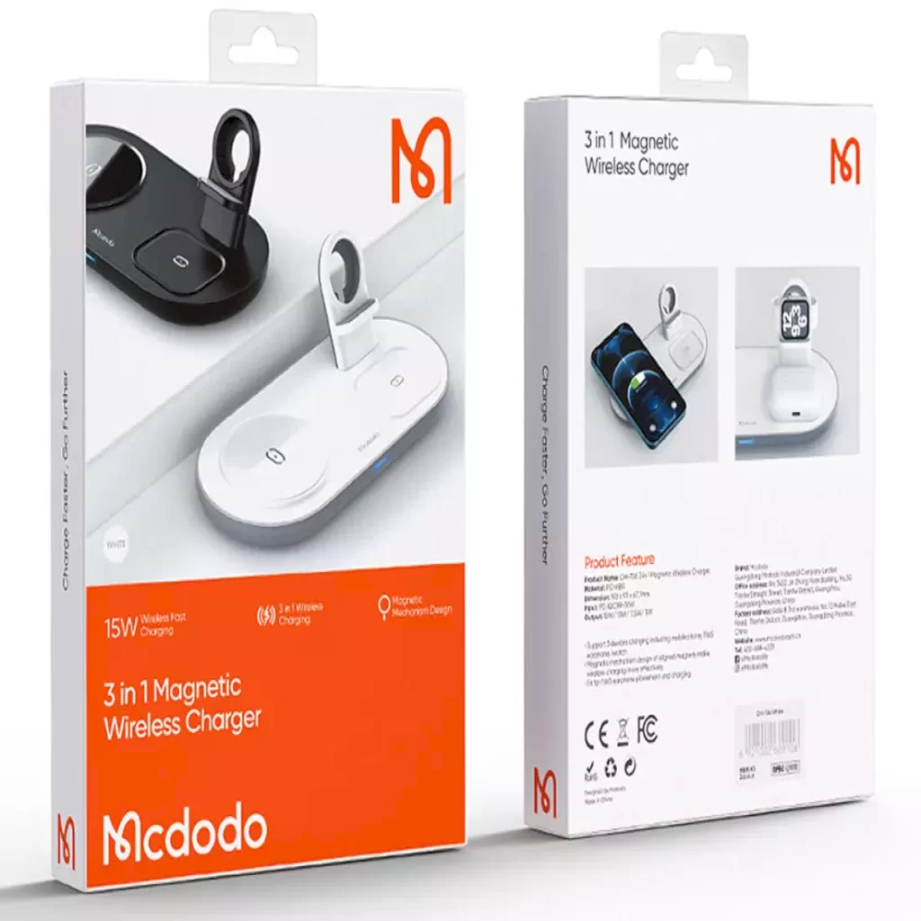 شارژر Mcdodo CH‑7060 یک راهحل حرفهای و منظم برای کاربرانی است که چندین دستگاه هوشمند را بهصورت روزمره شارژ میکنند. این شارژر با پشتیبانی از شارژ بیسیم مگنتی و قابلیت شارژ همزمان گوشی موبایل، ساعت هوشمند و هندزفری بیسیم، میز کار یا فضای کنار تخت شما را از شلوغی کابلها نجات میدهد.