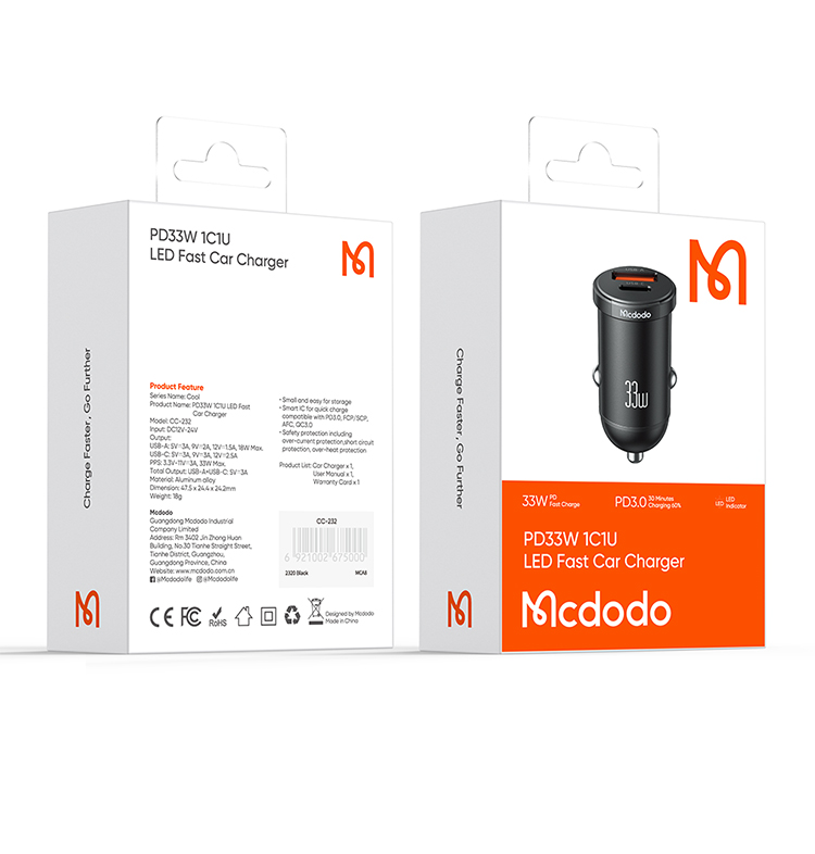 شارژر فندکی مکدودو MCDODO CC‑2320 با توان ۳۳ وات