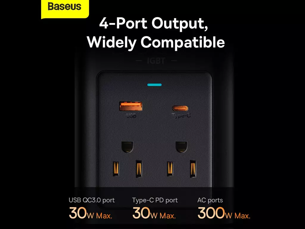 - پورتهای متعدد: دارای دو پورت AC، یک پورت USB-A و یک پورت USB-C برای شارژ همزمان چند دستگاه.