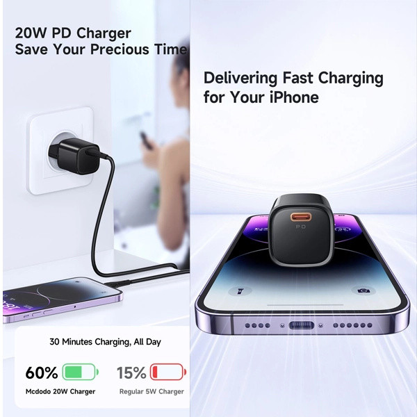 Mcdodo 20W PD Fast Wall Charger with Lightning Cable (CH‑4693)