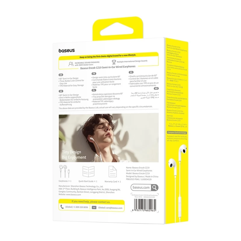 Baseus Encok CZ19 USB‑C Wired Semi‑Ear Earphones – 13 mm Drivers