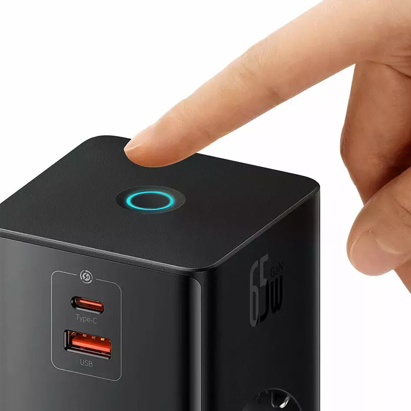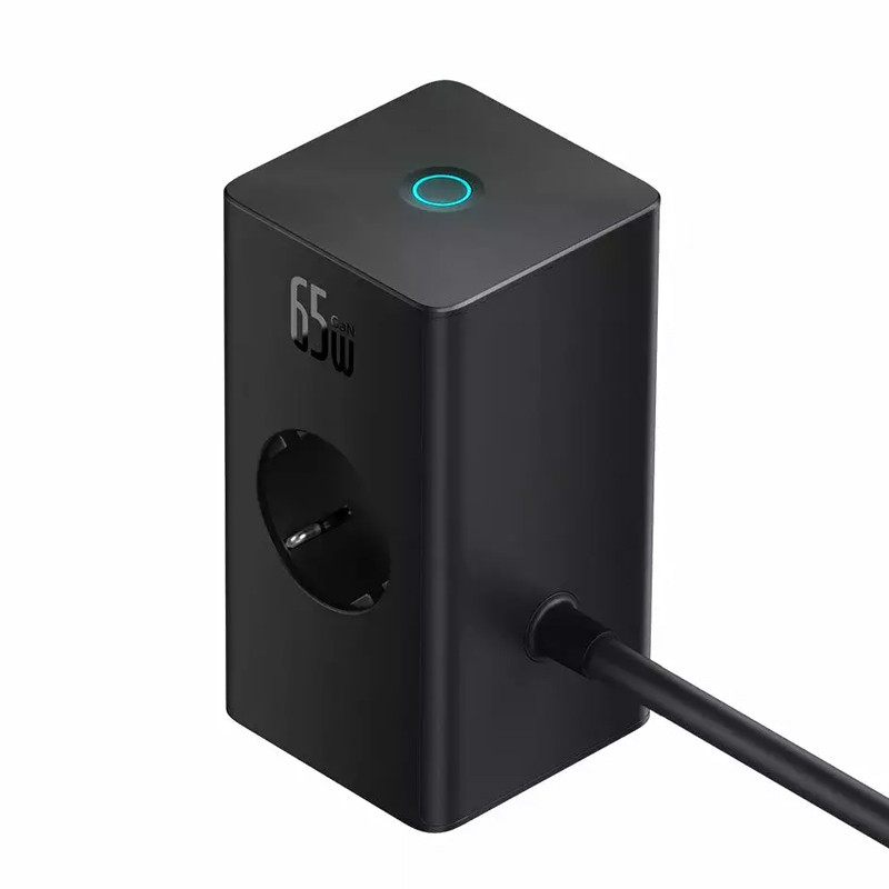 Baseus PowerCombo Digital PowerStrip 2AC+1U+1C+Retractable-C 65W with 1.5m power cord EU Black PSLR000301