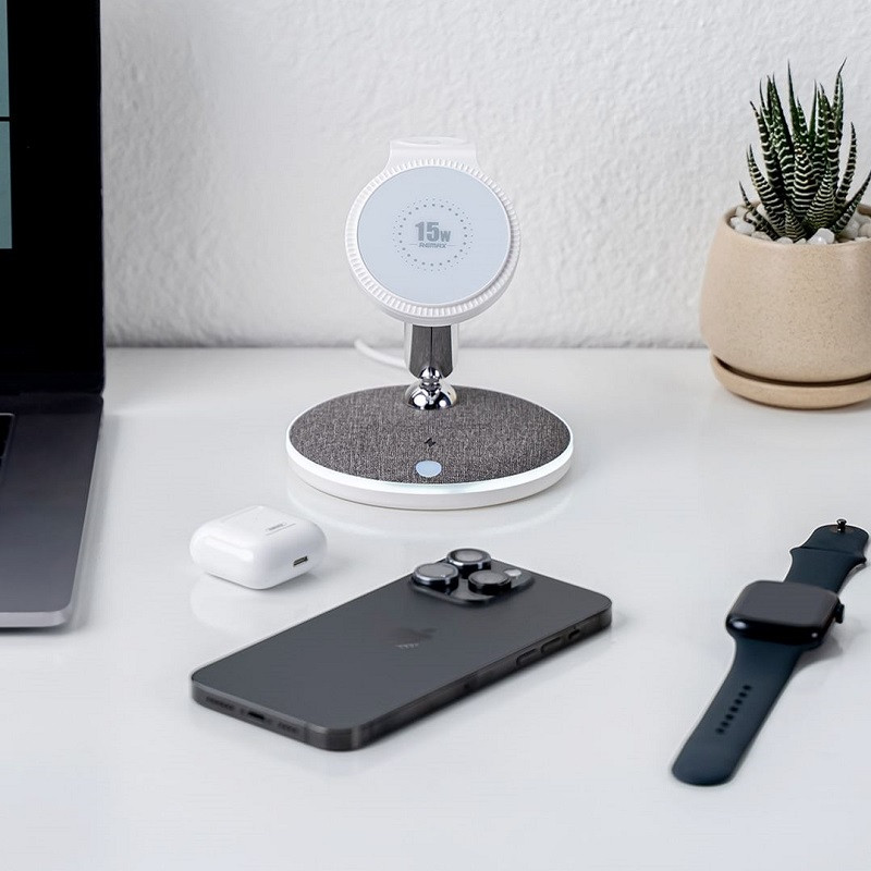 شارژر وایرلس Remax RPP‑D3 یک راهکار کامل و مدرن برای افرادی است که چندین گجت هوشمند را بهصورت روزانه استفاده میکنند و به نظم، سرعت و راحتی اهمیت میدهند. این محصول با طراحی ۵ کاره، امکان شارژ همزمان گوشی موبایل، هدفون بیسیم، ساعت هوشمند و سایر دستگاههای سازگار را در یک استیشن یکپارچه فراهم میکند و بهخوبی جایگزین چندین شارژر و کابل جداگانه میشود.